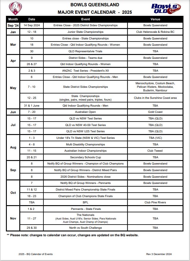 Bowls Qld Calendar Of Events