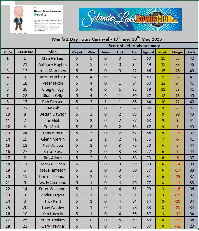 18/05/2025 – Men’s Two Day Carnival (Sponsored by Ross Hincksman@Realty).