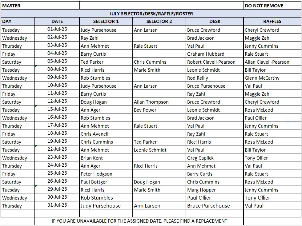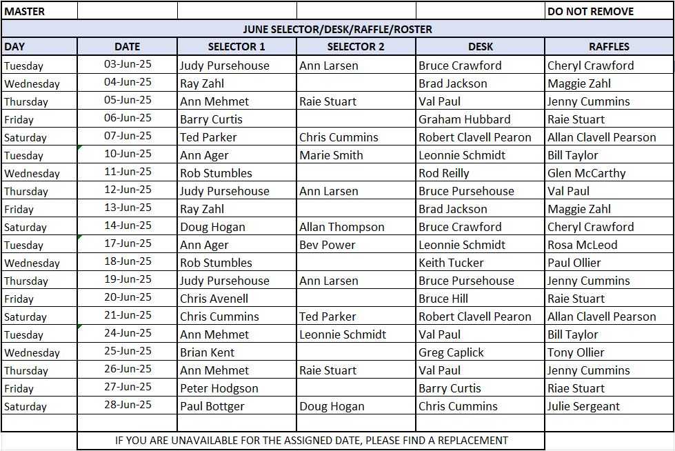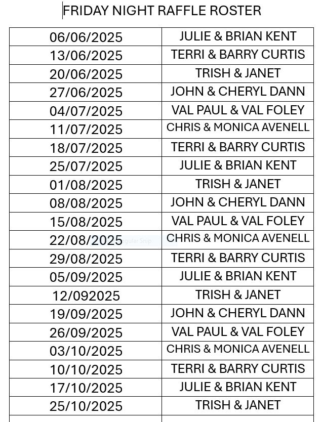 Friday Night Raffle Roster