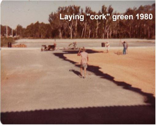 GRASS GREENS EVENTUALLY REPLACED THE CORK SURFACE, AND DESPITE OPPOSITION BY SOME PEOPLE TO THE CLEARING OF THE TREES, EVERY EFFORT WAS MADE TO BEAUTIFY THE AREA, WITH COUNCIL COMMENDING THE CLUB FOR THE WORK CARRIED OUT IN THE DEVELOPMENT OF THE CLUB.